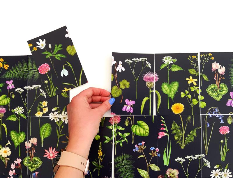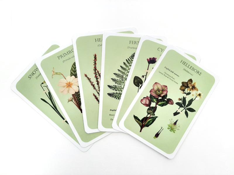 14th April 2024 Botanical Folklore Info Cards A set of info cards depicting watercolour illustrations, pressed flower specimens, folklore and literature for a variety of native British Botanicals.